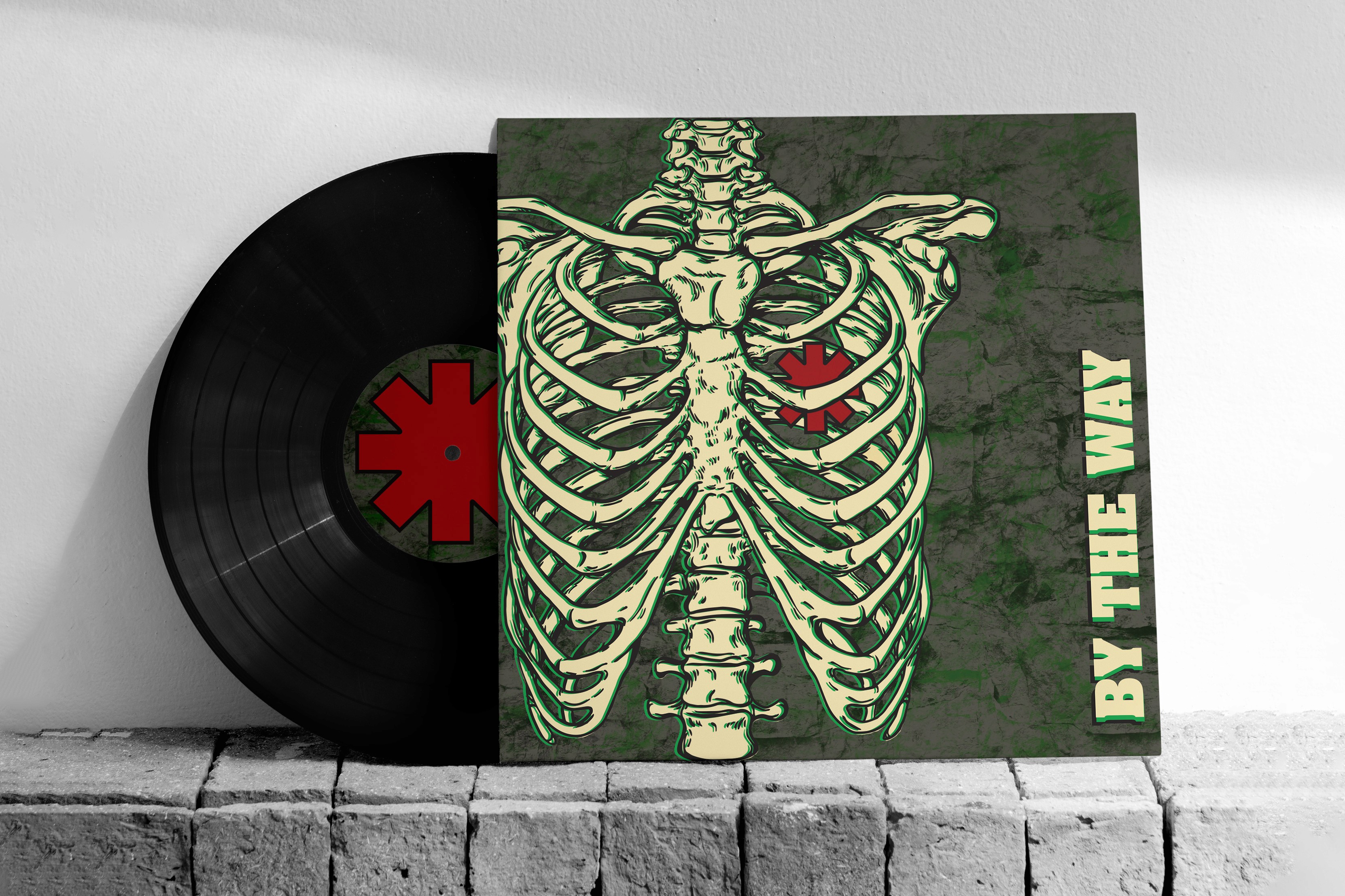 For this redesign, I chose the Red Hot Chili Peppers’ album By The Way, aiming to capture its grunge-inspired energy through the use of muted, dull colors. A standout lyric from the song By The Way, “Dogtown, blood bath, ribcage, dog tail”, struck me as a powerful visual anchor, inspiring me to set the ribcage as the focal point of the design. Reflecting the album’s choppy and disjointed sound, I intentionally introduced misregistration in the type and artwork, creating a sense of tension and imperfection that mirrors the music’s chaotic yet rhythmic feel.